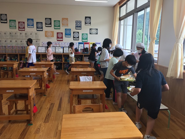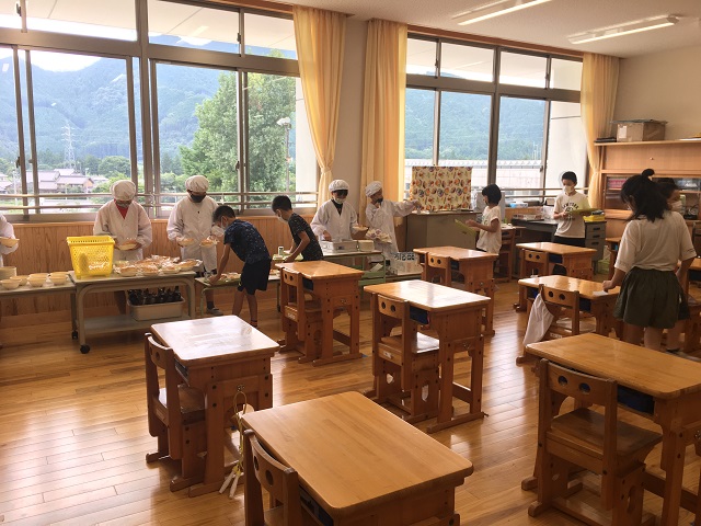 ホーム > 日々の活動の様子 / 2020年度 給食前の子どもたちは… 4限目終了のチャイムが鳴ると、飯南中の校長先生、西中の校長先生がつくられた「無敵のスクールランチャー」が放送で流れます。 この日の給食は子どもたちも喜ぶメニューでした。給食前のようすを紹介します。 2年生 6年生 5年生 今日はワインゼリー 4年生 1年生 こんな感じで届きます。 3年生 シェアする Twitter でシェア はてなブックマークに保存 LINE でシェア Facebook でシェア Pocket に保存 Feedly で購読 関連投稿 日々の活動の様子 / 2020年度 4年生がリサイクルセンターの見学に行きました。 日々の活動の様子 6月7日 全校遊びでドッジボール 日々の活動の様子 3月7日 今日は外で遊べる! 日々の活動の様子 11月28日 粥見電鉄? 日々の活動の様子 7月8日 色いろいろ 日々の活動の様子 続 キャンプファイアー 前の投稿 7月17日の子どもたちのようすを紹介します。 次の投稿 広がっています!
