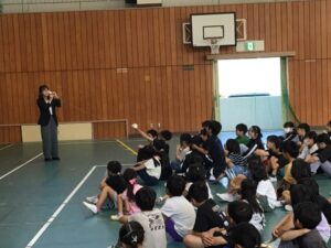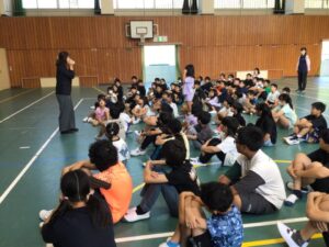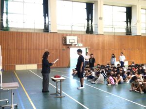 朝のスタートは、児童会主催の「あいさつスタンプラリー」です。