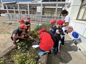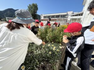 早速授業です。3年生はホウセンカの種を観察しています。