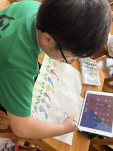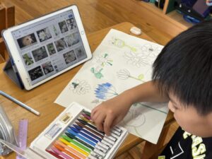 4年生は謎の?植物を描いています。おもしろいです。