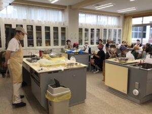 今年もこの季節がやってきました。5年生が収穫したもち米で親子で「おはぎ」づくりです。今年も甲子軒さんに指導をお願いしました。