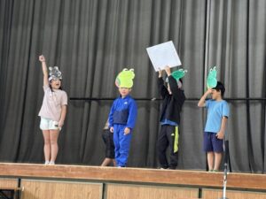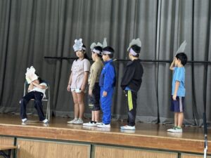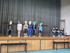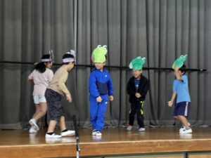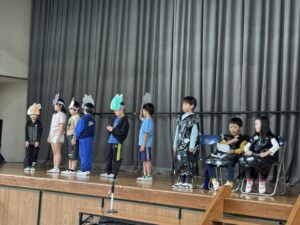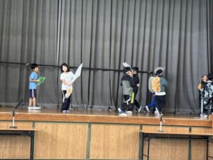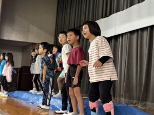 粥フェスでの舞台発表の練習が本格的です。今日は4学年の練習風景を紹介します。