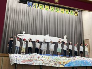 歌もセリフもたくさん練習してきました。街の絵も上手に描きました。はじめての粥フェスがんばりました。