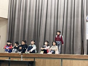 まいごのカギを拾ったてんが、不思議なかぎ穴と出会いながら大切なことに気づいていくお話をナレーションとともに上手に演じていきました。最高の3年生になろうね。