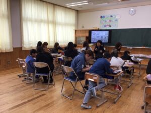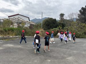 3限目、1年生が校外学習に向かいます。子ども目線で「まちたんけん」です。