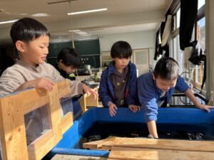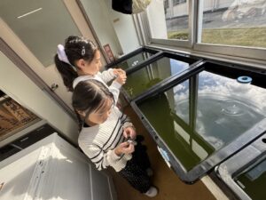 今日は、2年生が飯南高校に校外学習に行きました。飯南高校には「粥見水族館」があります。
