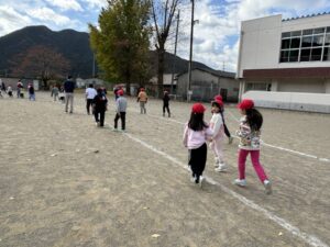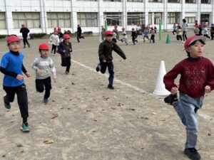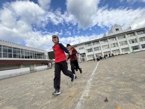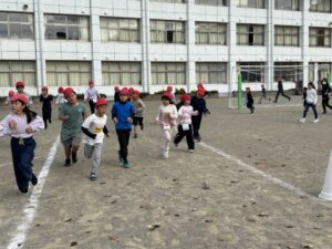 そして、走り始めます。最初の1周はみんなで!2周目からは自分のペースで!