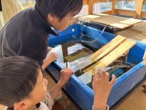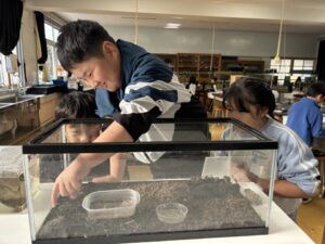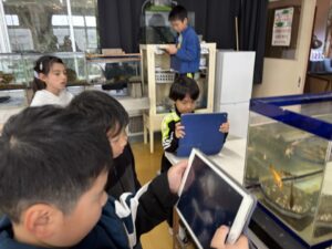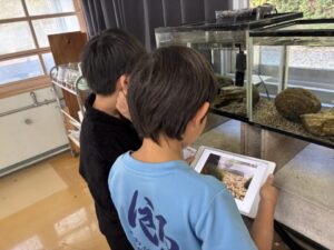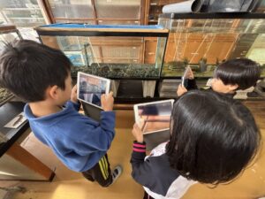 今日は、2年生が飯南高校に校外学習に行きました。飯南高校には「粥見水族館」があります。
