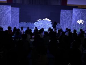 劇団うりんこさんに来ていただき「クモばんばとぎんのくつした」を観ました。