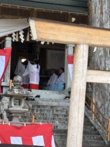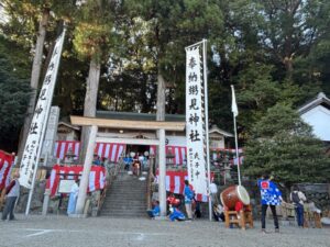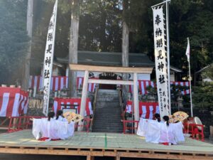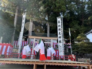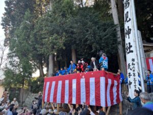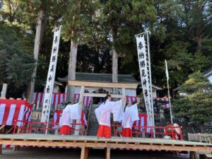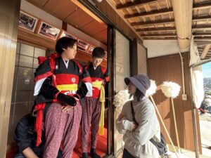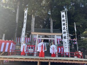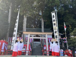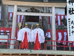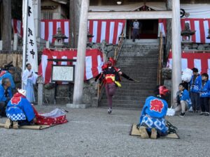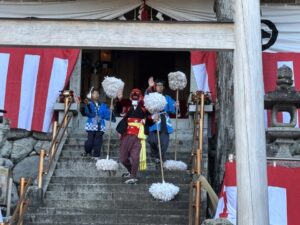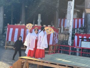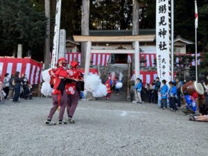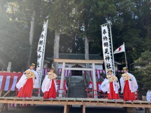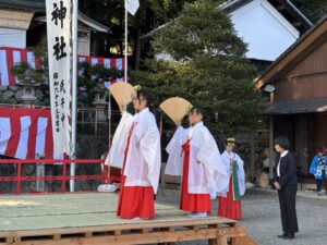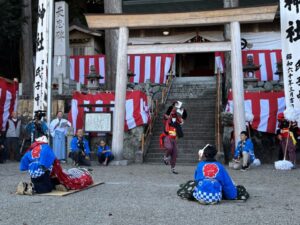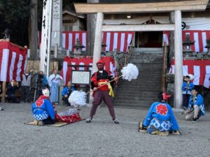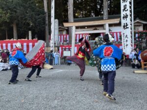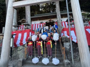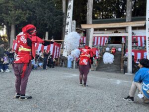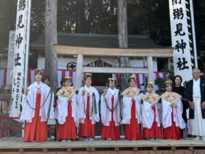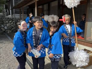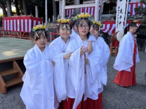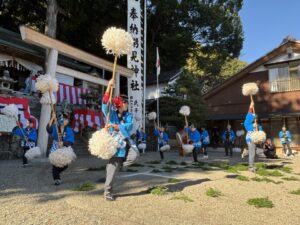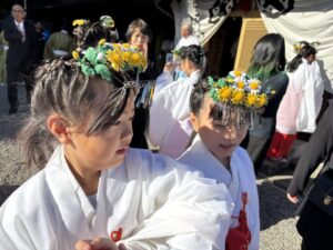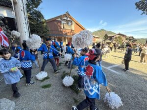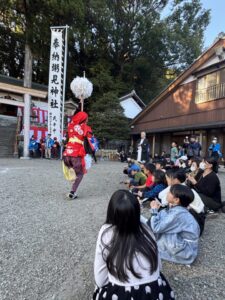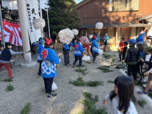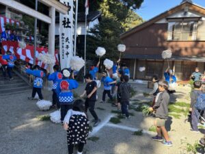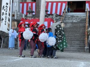 粥見小学校の子どもたちが浦安の舞や子どもてんてんに参加します。