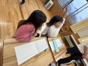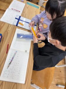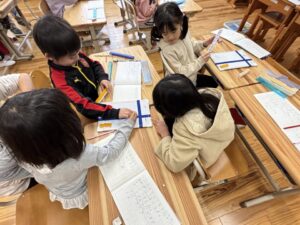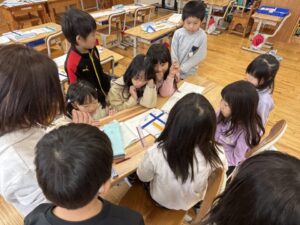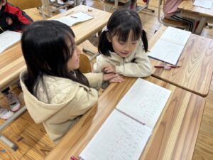 1年生に戻るとそれぞれの考えを説明し合っていました。