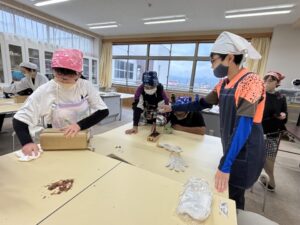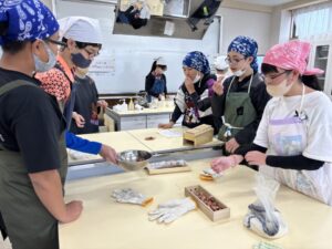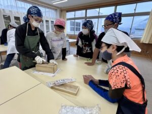 6年生は鰹節を削ります。