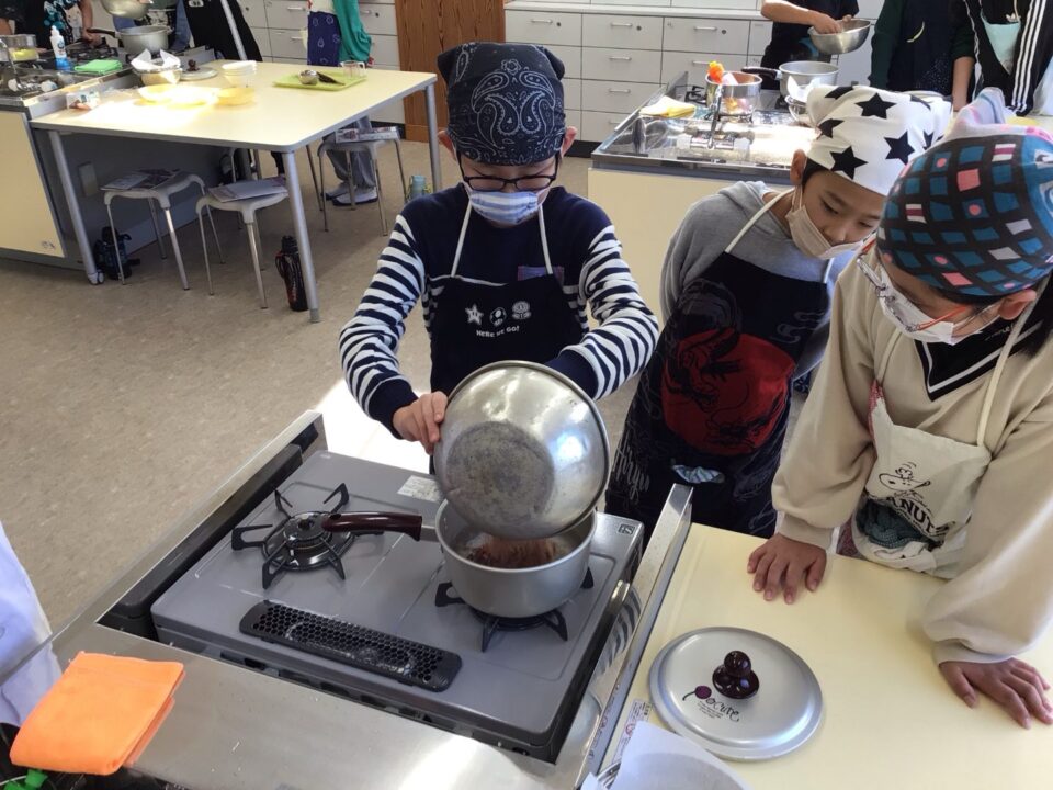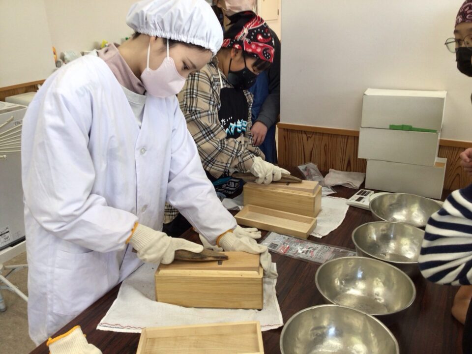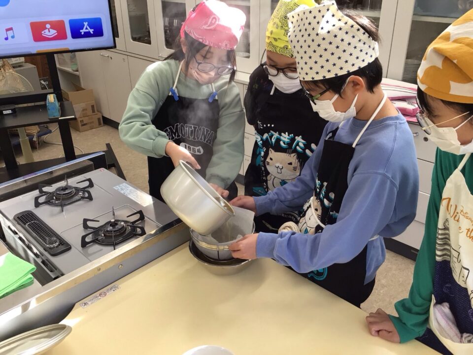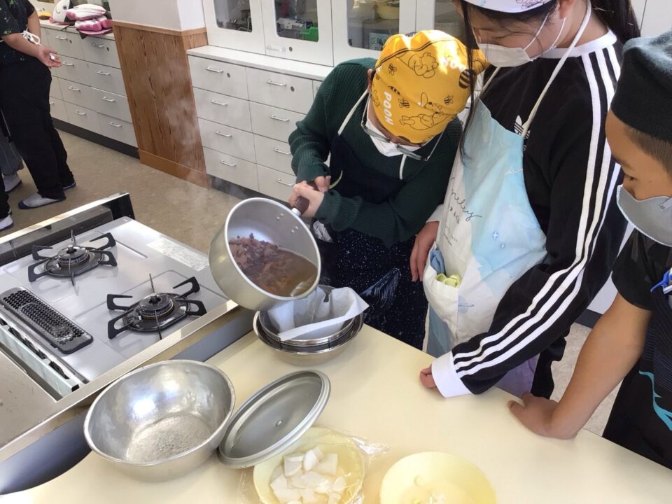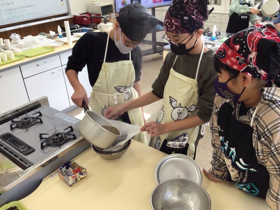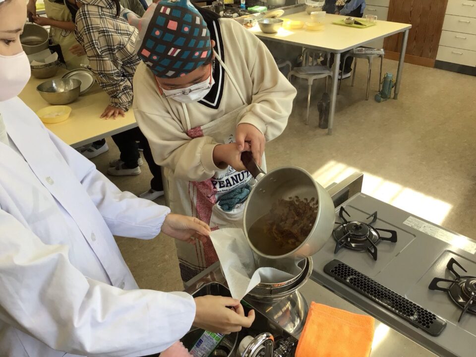 その後、自分たちで削ったかつおぶしを使ってだしをとりました。