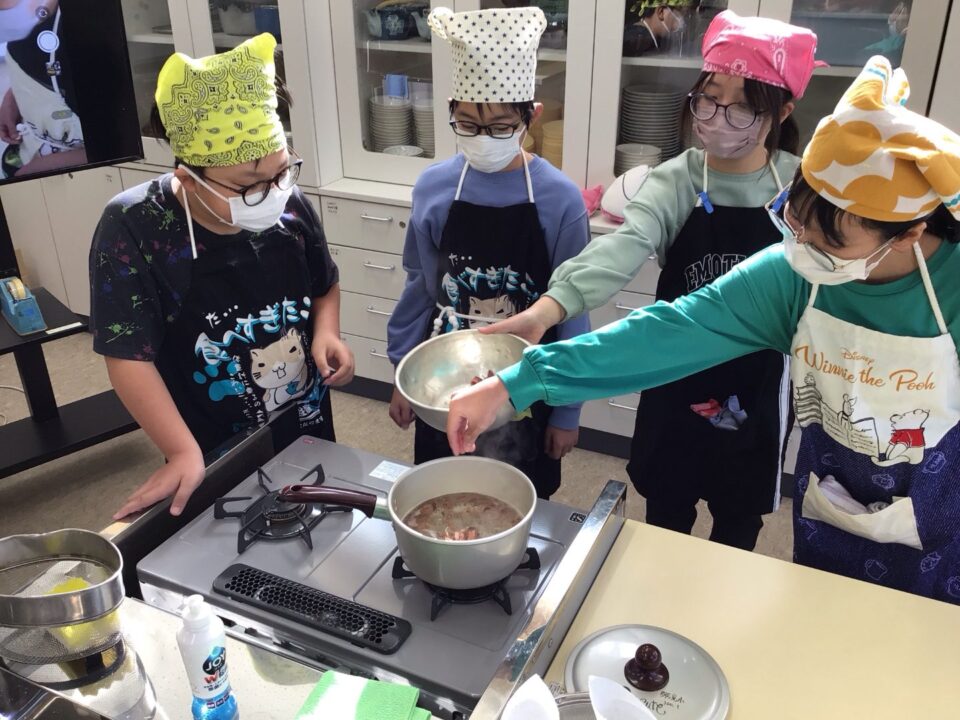そして、そのだしに具材を入れてみそ汁を作りました。