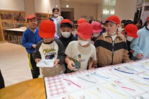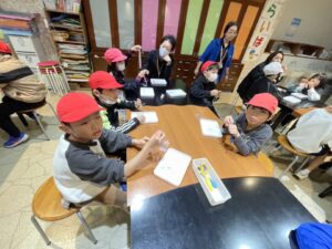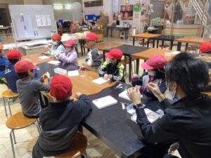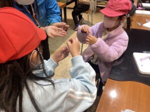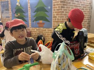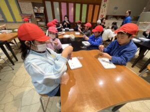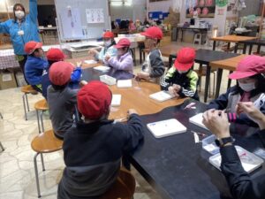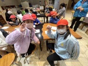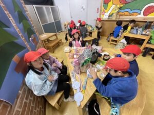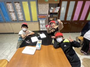 食後は工作の時間です。おひさまキーホルダーをつくります。