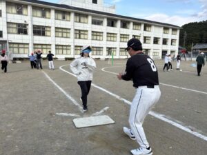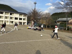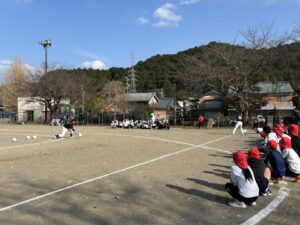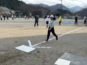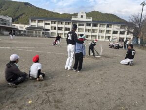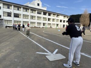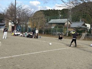 今日は、柿野小学校と合同で、5,6年生がグランドソフトボール体験をさせていただきました。