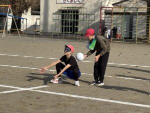 ①めかくしバッティング…音だけで打つのは難しいです。