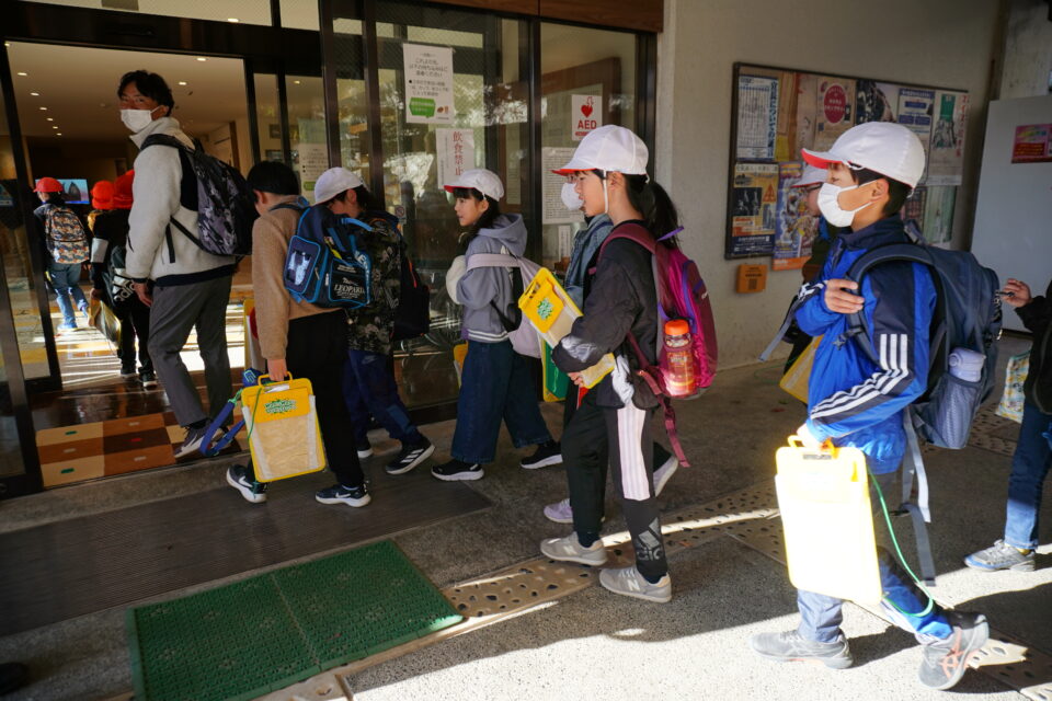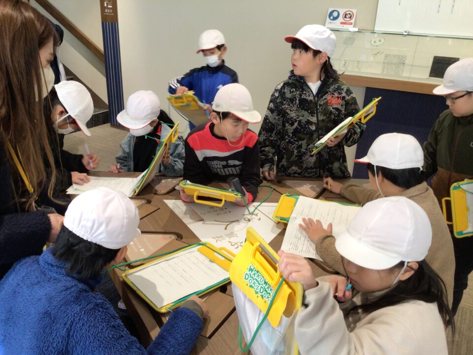今日は、柿野小学校の人たちと一緒に社会見学に行きました。