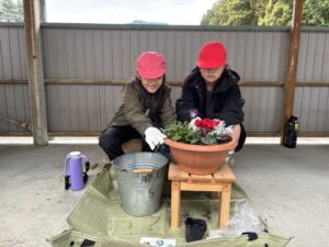 今日は、4年生が飯南高校さんにお世話になり「寄せ植え」体験をさせていただきました。