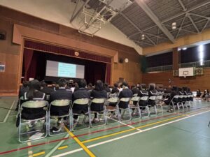 今日の午後、中学校区人権フォーラム全体会が飯南中学校で行われました。