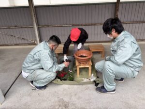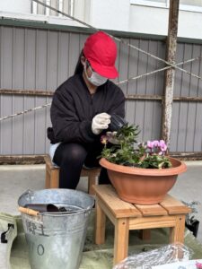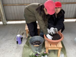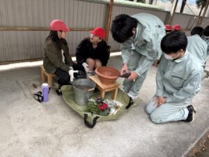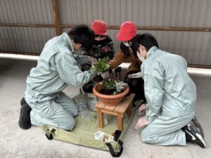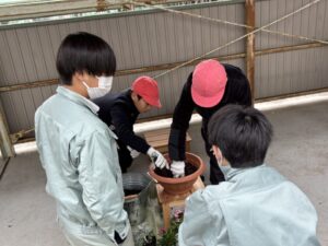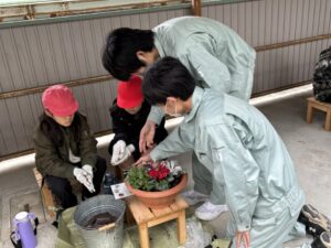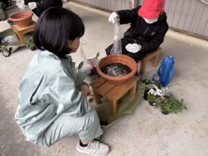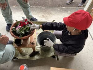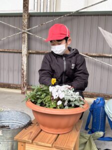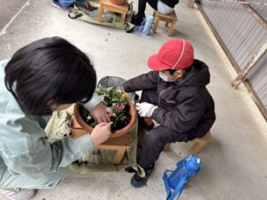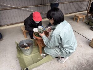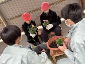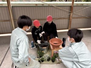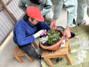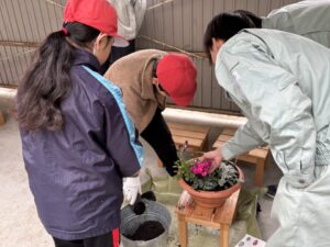 今日は、4年生が飯南高校さんにお世話になり「寄せ植え」体験をさせていただきました。