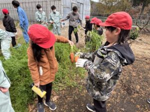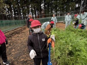 さらに、おまけの体験「ニンジンの収穫」です。農場には立派な野菜が育っています。