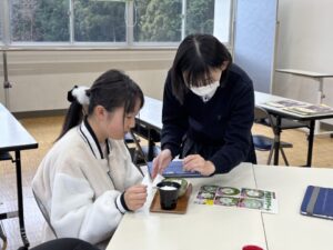 飯南茶の良さを知ってもらいやすいように始めた「ラテアート」です。地域のために活動する高校生のみなさんから6年生も多くを学んだと思います。