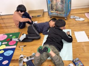さて、4年生では「いろいろなかお」ができていました。ふくわらいです。