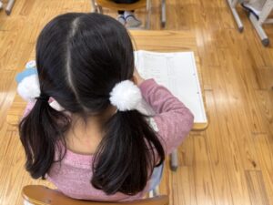 火曜日の朝は、あさ学プリントの日です。みんな集中してがんばっています。