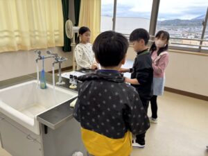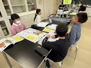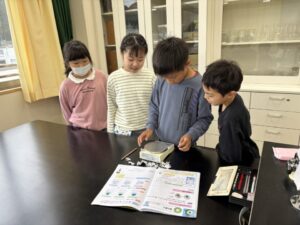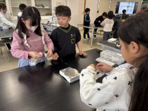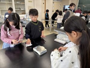 3年生が理科室にいました。はじめての理科室です。しっかり実験しようね。