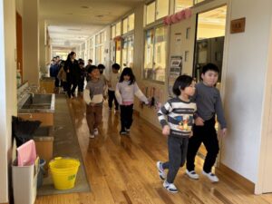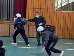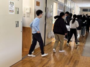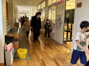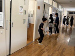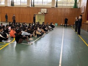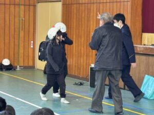 今日は、松阪警察署生活安全課の方にき今日は、松阪警察署生活安全課の方に来ていただき、不審者侵入を想定した避難訓練を行いました。