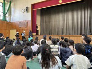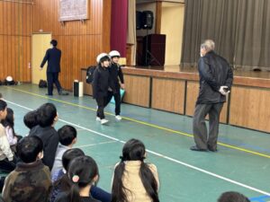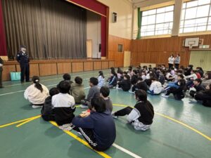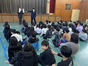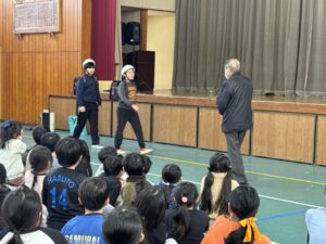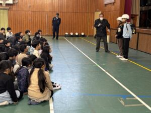 警察署の方から、不審者に関わって注意すべきことや行動について学びました。