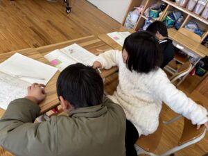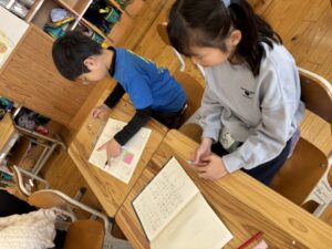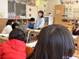 ノートの使い方や発表の仕方・聞き方をこうやって学んでいきます。