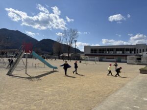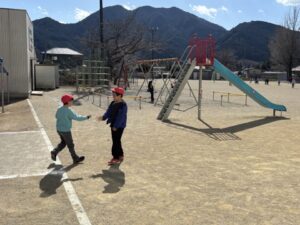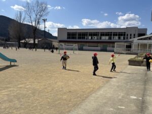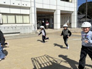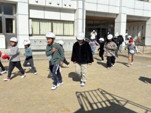 運動場へ避難します。命を守る行動ができているでしょうか?
