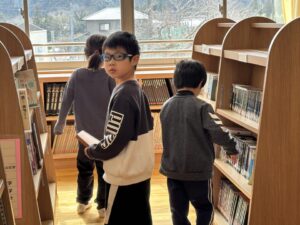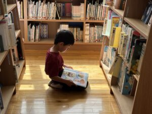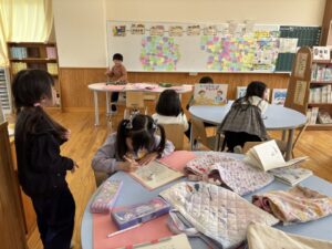校舎に戻ると、1年生が読書中です。