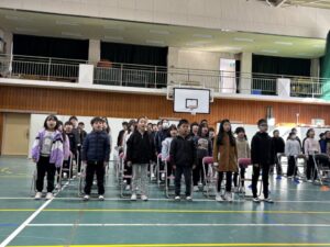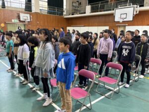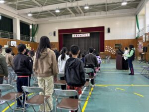 週が明け、寒い朝となりました。今日も式練習から始まります。