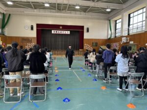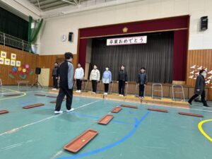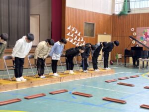 卒業生は礼と座り方の確認です。
