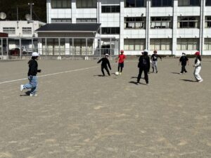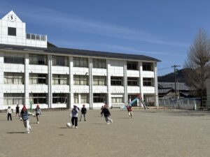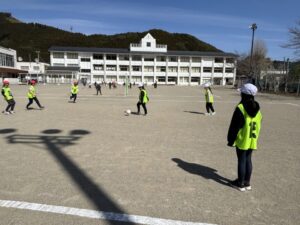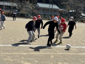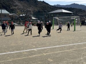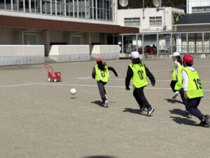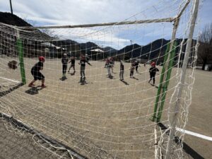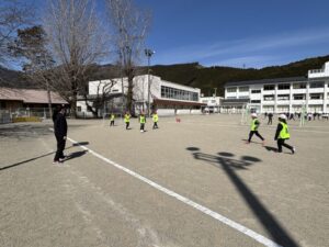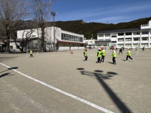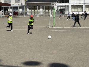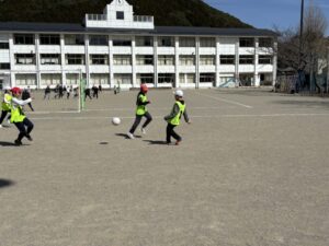 さて、気持ちの良い天気です。3・4年生体育のサッカーも盛り上がります。ボールを蹴るところから始めて、試合ができるようになりました。